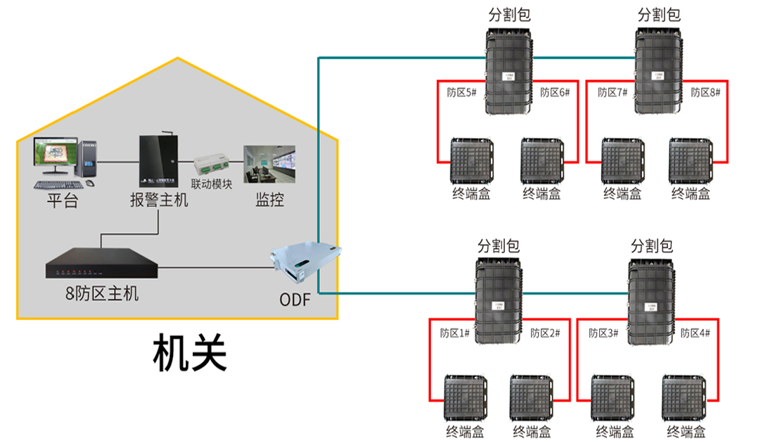 该项目防范距离长、且对安全等级要求高,飞天光电防区型振动光纤,沿周界防护栏挂设,形成防入侵报警。可以检测人员翻越、攀爬、剪网、破坏等非法入侵行为,有效提升周界公共安全及管理。