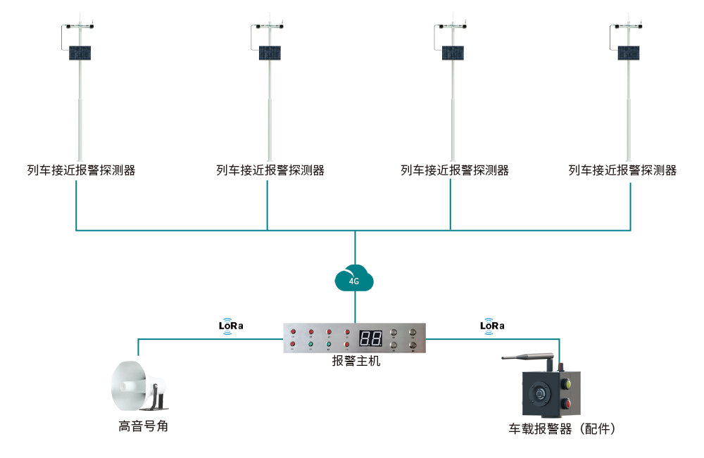 列车接近报警系统犹如“千里眼”,通过上下行感应来车,在施工区域前方2-8公里处部署双雷达探测器,24小时监测上下行列车动向。一旦检测到来车,系统立即通过4G网络向施工现场的报警主机发送信号,触发现场高音警报,同时警示人员和施工区域大型机械,列车即将接近,立即停止施工离开列车运行范围。
