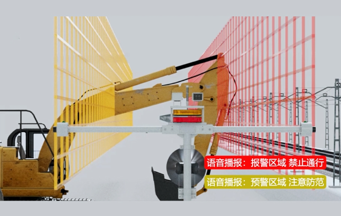 具体来看,这套系统的核心在于两道“看不见的安全网”:在大型机械臂两端安装的激光雷达会形成两道光幕——靠近工地一侧为预警区,靠近轨道一侧为报警区。当机械臂越过预警区时,车载语音提示器会发出“请注意,已接近危险区域”的提示音,警示灯同步闪烁;若继续侵入报警区,系统立即触发“紧急报警”,不仅声音提示变为“危险!立即停止作业!”,同时将实时画面同步至监控中心,并自动锁定违规操作记录。这种分级预警机制,让操作员能清晰判断危险程度,及时纠正动作。