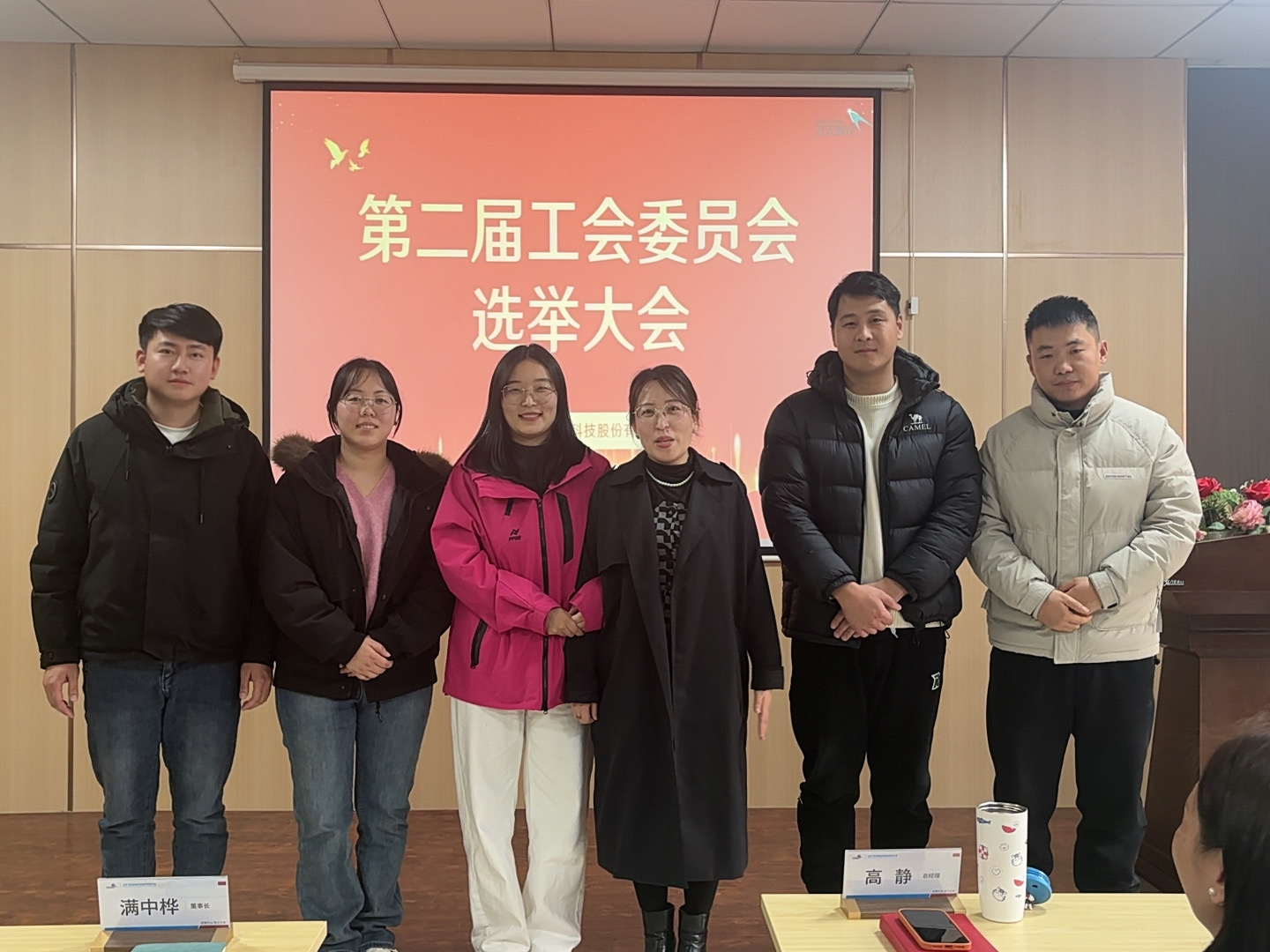 计票核对完,新一届员工委员会会长、副会长正式揭晓!随后,总经理高静为委员班子颁发证书,并与大家一同合影留念。现场暖意融融,新委员班子与旧委员班子并肩而立,定格下薪火相传的温暖瞬间,镜头里的笑容,是认可与祝福,更是飞天家人同心同行的美好见证。